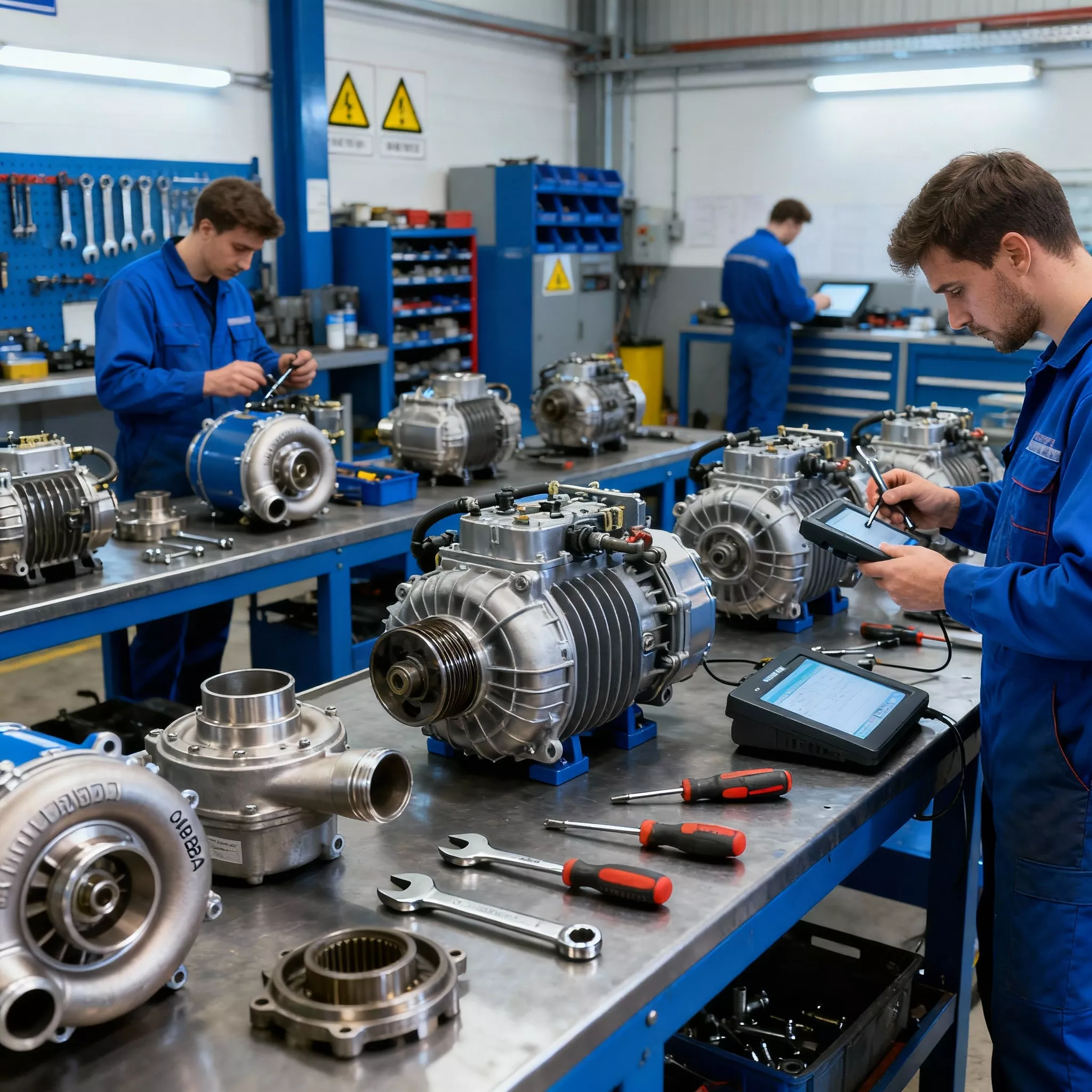 Comprehensive repair and balancing of turbochargers and governors to enhance power output and engine responsiveness.